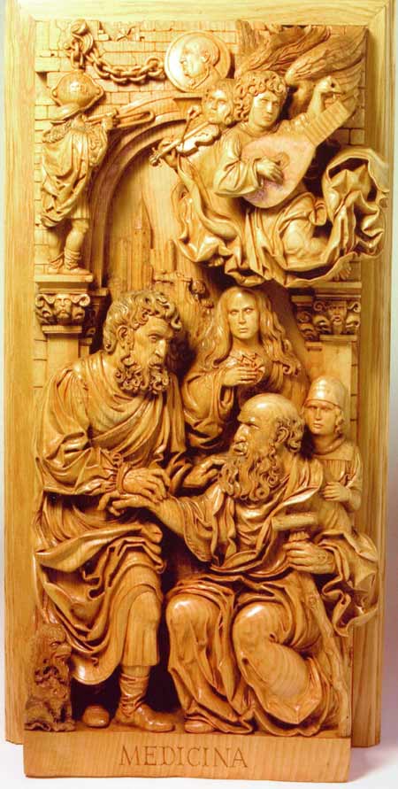 ![]() Joe Sedlmaier from Norfolk carved this piece from a block of the Lime. It is based on a Jacobean door design. |